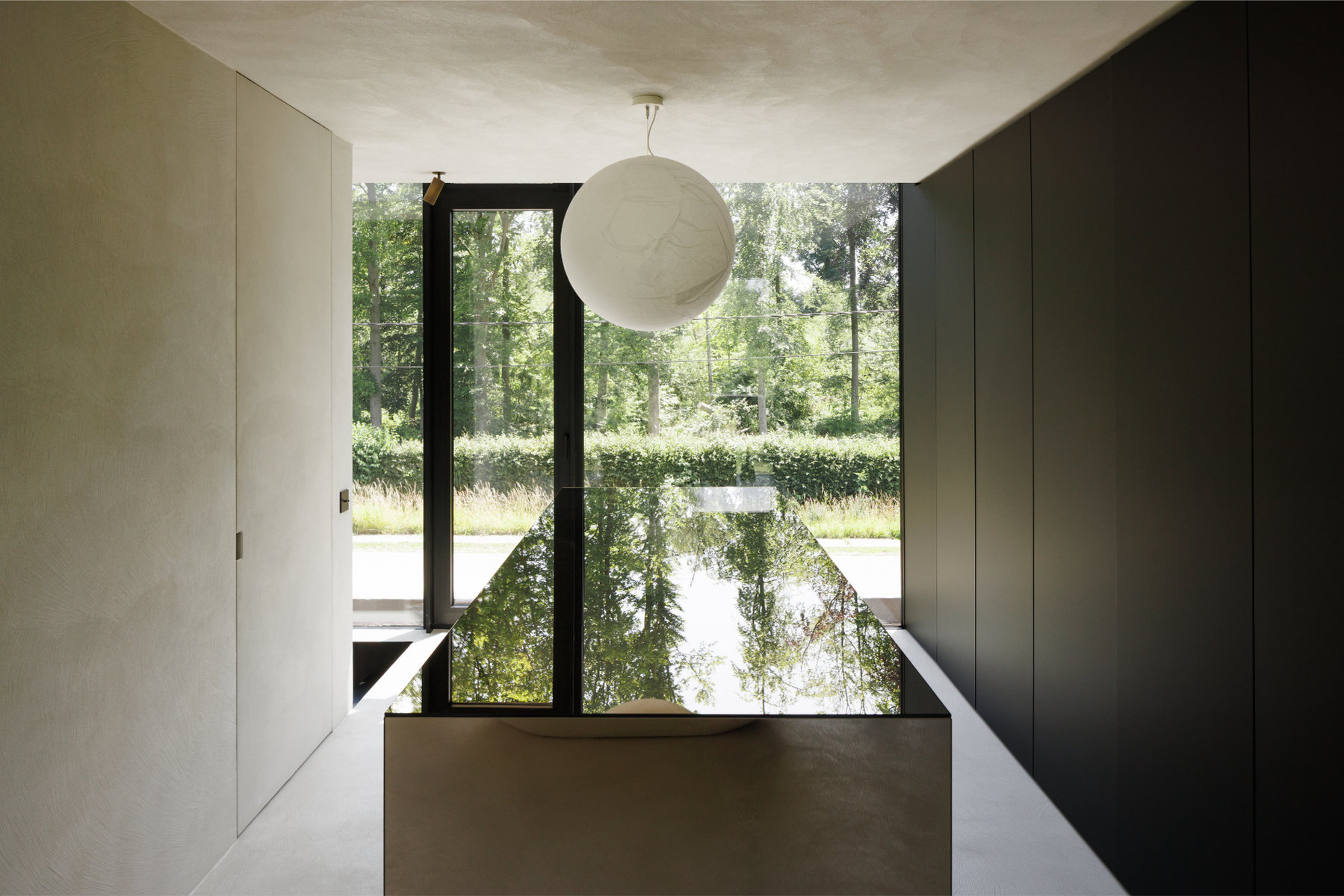 Binnen komen interieur en architectuur op een subtiele manier samen. De ruimtes voelen open en doordacht aan, met veel aandacht voor licht en sfeer. Donkere accenten en warme materialen brengen diepte en contrast, terwijl het ingetogen kleurenpalet zorgt voor een rustige basis.